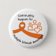 If you know someone who has MS and would like to organize a community event, wear our Community Support For Multiple Sclerosis Awareness button. The image of an orange ribbon unfolding alongside an icon showing a group of people and a heart displays a sense of community spirit. All text are customizable.