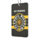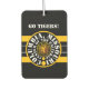 Car Air Freshener black and white with black, white and gold concentric-circles design with "COLUMBIA, MISSOURI CENTER OF THE UNIVERSE" with "GO AHEAD YOU CAN DO IT" above black, white and gold horizontal lines, with Y-NOT-ME logo in the center, and with MIZZOU on the back.