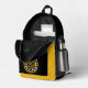 Backpack black and gold with white and gold graphics with "#COMOCOU COLUMBIA MISSOURS CENTER OF THE UNIVERSE GO AHEAD YOU CAN DO IT" with Y-NOT-ME logo in the center. Columbia, Missouri is a city on the rise. This design is a shout-out to Columbia.