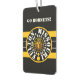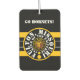 Car Air Freshener black and white with black, white and gold concentric-circles design with "FULTON, MISSOURI CENTER OF THE UNIVERSE" with "GO AHEAD YOU CAN DO IT" above black, white and gold horizontal lines, with Y-NOT-ME logo in the center, and with Mad Hornet on the back.