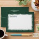 Pine needle green 5x7 envelope conveniently has your company address and logo already printed. Budget company envelopes are easy to personalize with other sizes available. Pre-printed address, business envelopes are versatile for company holiday cards, collateral, or promotional materials. Decorative white snowflake border is a festive addition to your hunter green, winter green, forest green company holiday Christmas cards. Attractive with many color logos, including green company logos.