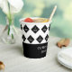 Promotional paper cups for your business you can personalize with your logo placed in a pattern, add your business name or slogan too in elegant white letters against a black border.