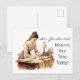 A beautifully illustrated Victorian Woman, poised and elegant, sits at her Antique Writing Desk. Her thoughtful gaze rests on the open pages before her, surrounded by ink bottles, quills, and delicate stationery. The soft glow of a nearby lamp casts a warm light, evoking a sense of Calm and Creativity. Above her, the phrase "Let’s Get Started!" is delicately scripted in a vintage, flowing font. Below, a simple yet inviting call to action reads, "Reserve Your Time Today," inviting the viewer to take the first step toward their own journey of Success and Growth. This Business Postcard captures the essence of Possibility and Inspiration.