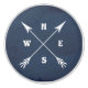 Compass illustration with arrows and north, east, south, west decoration on blue grunge background