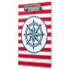 Nautical design with compass decoration on red and white striped background