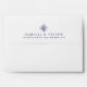 A set of unique wedding envelopes featuring a compass rose on the outside flap with your address information underneath. On the interior of the envelope is a striped dark navy and white pattern completing the nautical style theme. A unique and time saving way to set out envelopes in style complete with your address information.