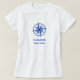 A large dark blue compass rose dominates the front of this nautical-themed t-shirt. Customize it with the name of your boat and crew.