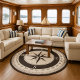 compass rose rug,nautical round area rug,ship directions circle carpet,north south east west,northern southern eastern western,black and white,dark charcoal grey,circular direction star,marine sea ocean theme,vintage antique cream ivory