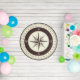 Compass Rug - Vintage Cream Round Area Rug Carpet