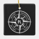 Compass star in black and white with emblems wanderlust, nature, travel and explore that are customizable so you can write your own texts. In the centre of the star is a personalized monogram. Perfect for nature lovers hikers and travellers.