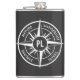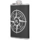 Compass star emblem monogram black and white flask