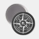 Compass star in black and white with emblems wanderlust, nature, travel and explore that are customizable so you can write your own texts. In the centre of the star is a personalized monogram. Perfect for nature lovers hikers and travellers.