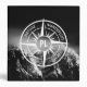 Compass star with black and white photograph of dramatic snowy mountains with milky clouds. With emblems wanderlust, nature, travel and explore that are customizable so you can write your own texts. In the centre of the star is a personalized monogram. Perfect for nature lovers hikers and travellers.