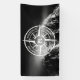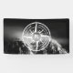 Compass star with black and white photograph of dramatic snowy mountains with milky clouds. With emblems wanderlust, nature, travel and explore that are customizable so you can write your own texts. In the centre of the star is a personalized monogram. Perfect for nature lovers hikers and travellers.
