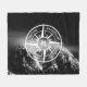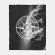 Compass star with black and white photograph of dramatic snowy mountains with milky clouds. With emblems wanderlust, nature, travel and explore that are customizable so you can write your own texts. In the centre of the star is a personalized monogram. Perfect for nature lovers hikers and travellers.