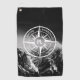 Compass star with black and white photograph of dramatic snowy mountains with milky clouds. With emblems wanderlust, nature, travel and explore that are customizable so you can write your own texts. In the centre of the star is a personalized monogram. Perfect for nature lovers hikers and travellers.