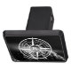Compass star with black and white photograph of dramatic snowy mountains with milky clouds. With emblems wanderlust, nature, travel and explore that are customizable so you can write your own texts. In the centre of the star is a personalized monogram. Perfect for nature lovers hikers and travellers.