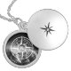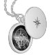 Compass star emblem monogram dramatic mountains locket necklace