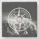 Compass star with black and white photograph of dramatic snowy mountains with milky clouds. With emblems wanderlust, nature, travel and explore that are customizable so you can write your own texts. In the centre of the star is a personalized monogram. Perfect for nature lovers hikers and travellers.