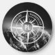 Compass star with black and white photograph of dramatic snowy mountains with milky clouds. With emblems wanderlust, nature, travel and explore that are customizable so you can write your own texts. In the centre of the star is a personalized monogram. Perfect for nature lovers hikers and travellers.