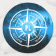 Compass star with a photo of a fog in a frosty winter spruce forest with emblems wanderlust, nature, travel and explore that are customizable so you can write your own texts. In the centre of the star is a personalized monogram. Perfect for nature lovers hikers and travellers.