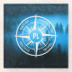 Compass star with a photo of a fog in a frosty winter spruce forest with emblems wanderlust, nature, travel and explore that are customizable so you can write your own texts. In the centre of the star is a personalized monogram. Perfect for nature lovers hikers and travellers.