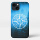 Compass star with a photo of a fog in a frosty winter spruce forest with emblems wanderlust, nature, travel and explore that are customizable so you can write your own texts. In the centre of the star is a personalized monogram. Perfect for nature lovers hikers and travellers.