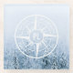 Compass star with a photo of a fog in a frosty winter spruce forest with emblems wanderlust, nature, travel and explore that are customizable so you can write your own texts. In the centre of the star is a personalized monogram. Perfect for nature lovers hikers and travellers.