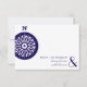 A wedding r.s.v.p. featuring a navy blue compass at left with matching text at bottom right and on reverse. Look for matching wedding and save the date invitations at Jill's Paperie.