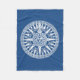 A vintage compass or wind rose design in white on a blue background gives this item an antique nautical look.
