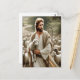 This tender portrayal of Jesus as the Good Shepherd exudes compassion and care. In the center of the image, Jesus is shown in a three-quarter view, dressed in a flowing off-white robe. His light brown hair, tan complexion, and beard reflect His warmth and humility. Holding a lamb close to His chest and carrying a shepherd’s staff, He interacts lovingly with His flock.