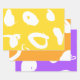 This set of three wrapping papers is made up of a system of white artistic spots and lines that draw the surfaces in yellow, orange and lavender, each in their own way.