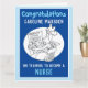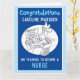 Congratulations to a Nurse who has completed his or her nursing training. Funny cartoon illustration of a Nurse reading a paper with a spot-the-boil competition. Congratulations card for a newly qualified Nurse.
