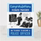 Congratulations to a Policeman who has completed his or her police training. Funny Cartoon drawing which shows Policemen at Police Training School learning a Police cliche from the blackboard. Funny illustration of a class of policeman at a Police Academy. Congratulations card for a newly graduated police officer.