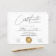 Elegant Certificate of Completion with trendy script font and faux gold wax stamp. Perfect to create personalized certificates of appreciation or diplomas. This professional course award features modern calligraphy font, minimal layout and a wax seal badge with space for your logo or initials, creating a beautiful certificate of achievement design.