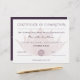 Elegant certificate of completion for yoga and reiki training courses achievement with a beautiful and modern moiré effect lotus flower. Text and logo to personalize. Main color : muted purple.