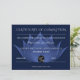 Elegant certificate of completion for yoga and reiki training courses achievement with a beautiful and modern moiré effect lotus flower. Text and logo to personalize. Main color : midnight blue.