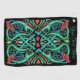 This golf towel is a black with a complex Irish Celtic knot design in greens and blues with red dragon heads with gold horns at each corner on a black background. Customise your text with the template.