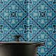 Complex Soft Blue and Indigo Geometric Pattern Ceramic Tile