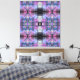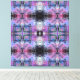 A kaleidoscopic pattern features vibrant hues of pink, purple, and blue, with intricate geometric designs. The symmetrical arrangement creates a visually captivating and harmonious effect