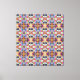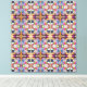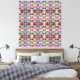 A symmetrical pattern bursts with vibrant colors and intricate geometrical shapes. The repetitive design features hues of blue, orange, pink, and red, creating a kaleidoscopic effect.