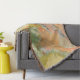 A quality printed throw has its advantages. This is a much finer weave throw than its loopier cousins, and though lighter, it is worth the investment for custom room accessorizing. The back is much prettier than the typical brown, and the fringe on the long sides very vivid, the selvage nicely done. Before photographing, I washed the throw in cold water, delicate, with a thicker woven throw the same size. On tumble dry low, this throw was dry in half the time as the other. This is a very practical quality if you use throws for furniture covers or to wrap up in frequently. The sleekness of the fabric makes it a great layer for accenting or protecting without the feeling of sitting on too much stuff. Perfect for napping or when you feel a light chill coming on. The color printing is beautiful and on this fabric, matched the design and color of my Photoshop image. This is an advantage for blending room fabrics and colors. The fringe on the short sides prints the colors from the design image and therefore varies from the side fringe. I streaked a white fractal line through the plaid pattern to give the illusion of weaving. This printed as crisp as an illusory thread, and put some white in the short side fringe, showing another advantage of print vs loomed- for artistic purposes, line lines, detail, and color integrity can be planned and preserved. My loomed throws have color limitations and more of a needlepoint texture. Print throws reproduce an exact image. The throw felt a little stiff straight out of the package, but this went away in the first delicate wash. Of course I searched the wash water for ink or bleeding and there was none.