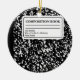 Lightweight, smooth, pure white ornament with nice sheen. Perfect size to be seen from across the room ... and to attract closer inspection! Price was great for ordering enough for the whole family! Clear, bold black design just as requested. Matches the order exactly. Just so nice!