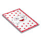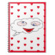 Take a moment to write down your memorable moments, your thoughts or your favorite recipes in you brand new writing journal. The journal is covered in red hearts with a face that can only be described as whimsical.