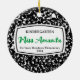 Lightweight, smooth, pure white ornament with nice sheen. Perfect size to be seen from across the room ... and to attract closer inspection! Price was great for ordering enough for the whole family! Clear, bold black design just as requested. Matches the order exactly. Just so nice!