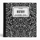 Black composition notebook binder for a school teacher or student.