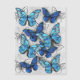Vertical composition of realistic, blue and white morpho butterflies on gray textured background. Morpho blue butterfly.