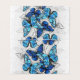 Vertical composition of realistic, blue and white morpho butterflies on gray textured background. Morpho blue butterfly.