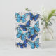 Vertical composition of realistic, blue and white morpho butterflies on gray textured background. Morpho blue butterfly.