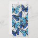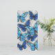 Vertical composition of realistic, blue and white morpho butterflies on gray textured background. Morpho blue butterfly.